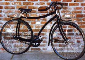 This 1891 New Mail bicycle features wooden handles and an antique saddle. This was the first of the Safety Bikes. As pictured, built for Euro Disney Paris.