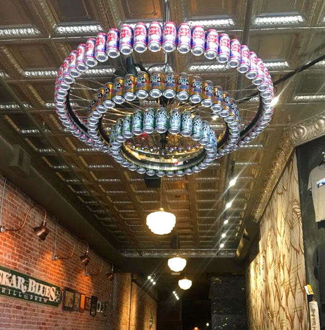 Troy Mandery lamp using bike rims, Longmont, Colorado.