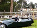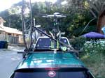 Riding hiwheel bicycles can be a fun and relaxing endeavor. However, the large size of the bikes, while impressive, can make it difficult to tranport them to your chosen riding location. Below are a few examples of our customers' solutions. (These images can also be found in the Customer Photos section.) Click the thumbnail images to enlarge: