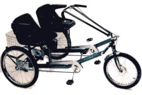 3-speed SBST shown above with armrests and canopy and a trail bike attached. The family cycle!"